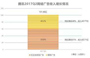 騰訊2017Q2财報(bào):社交廣告收入增長(£cháng)61%,半年(nián)收入